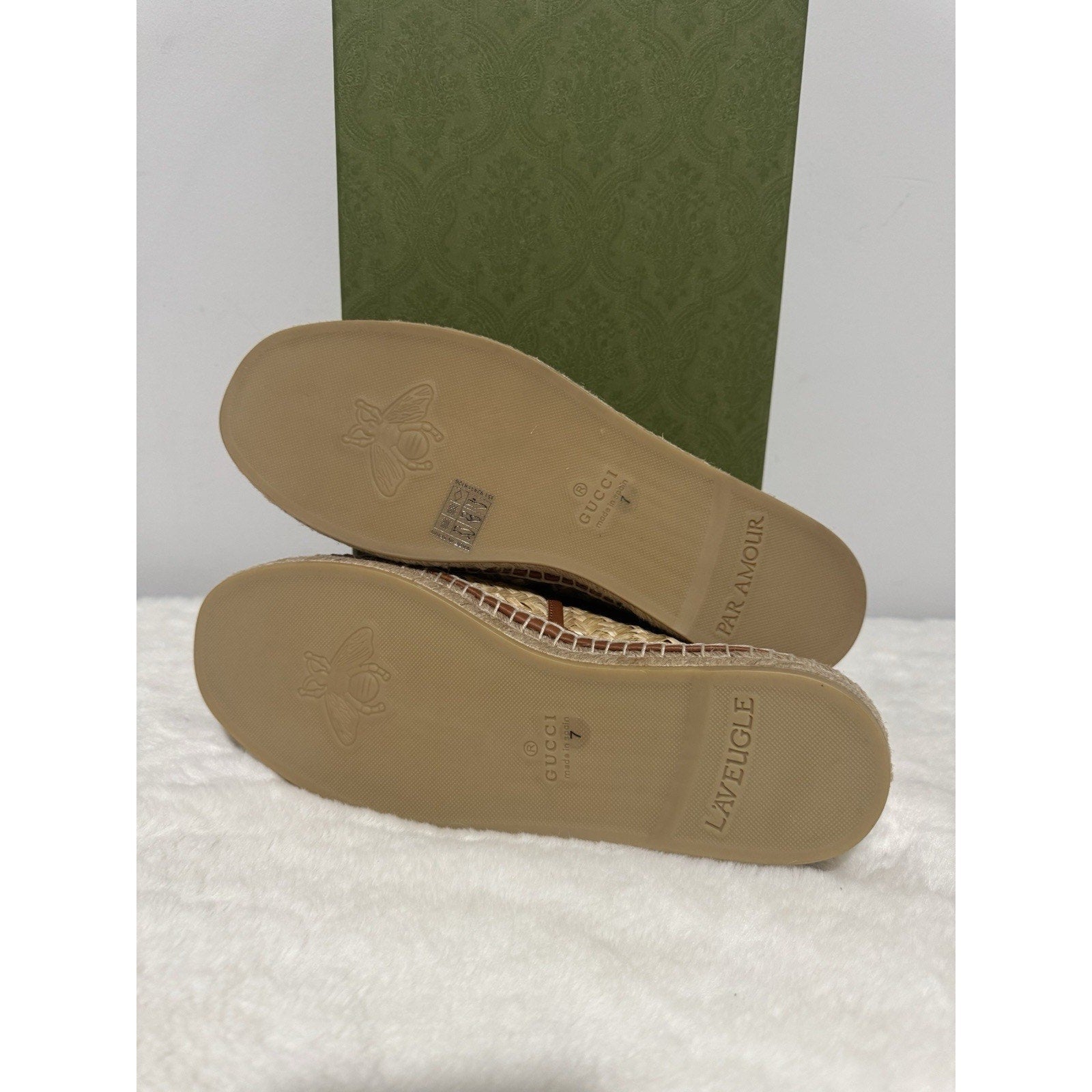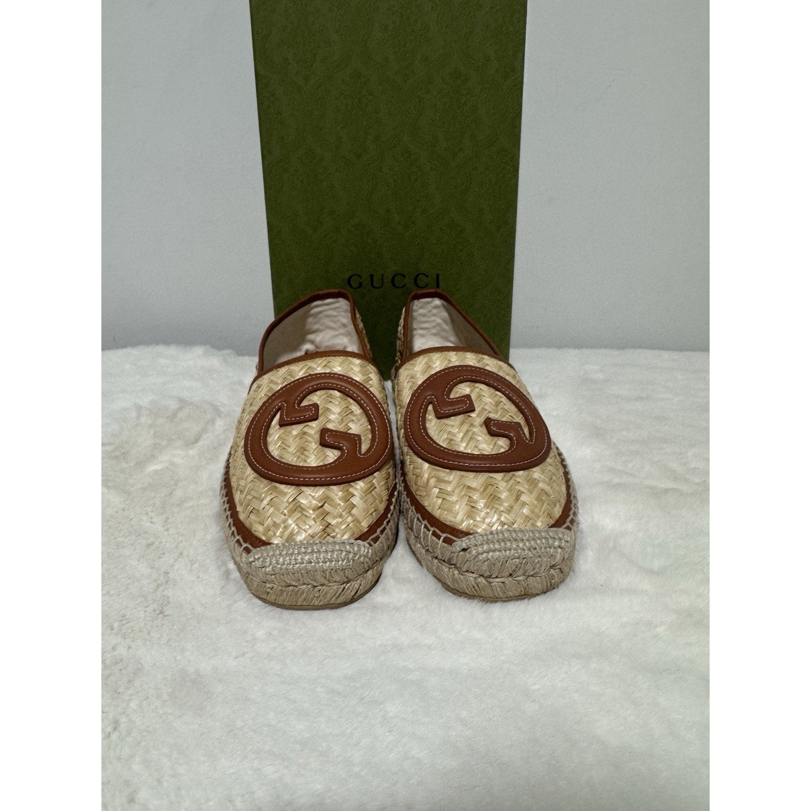 Brand New Gucci Brown Raffia Interlocking GG Espadrilles Size 7 (US 7.5)