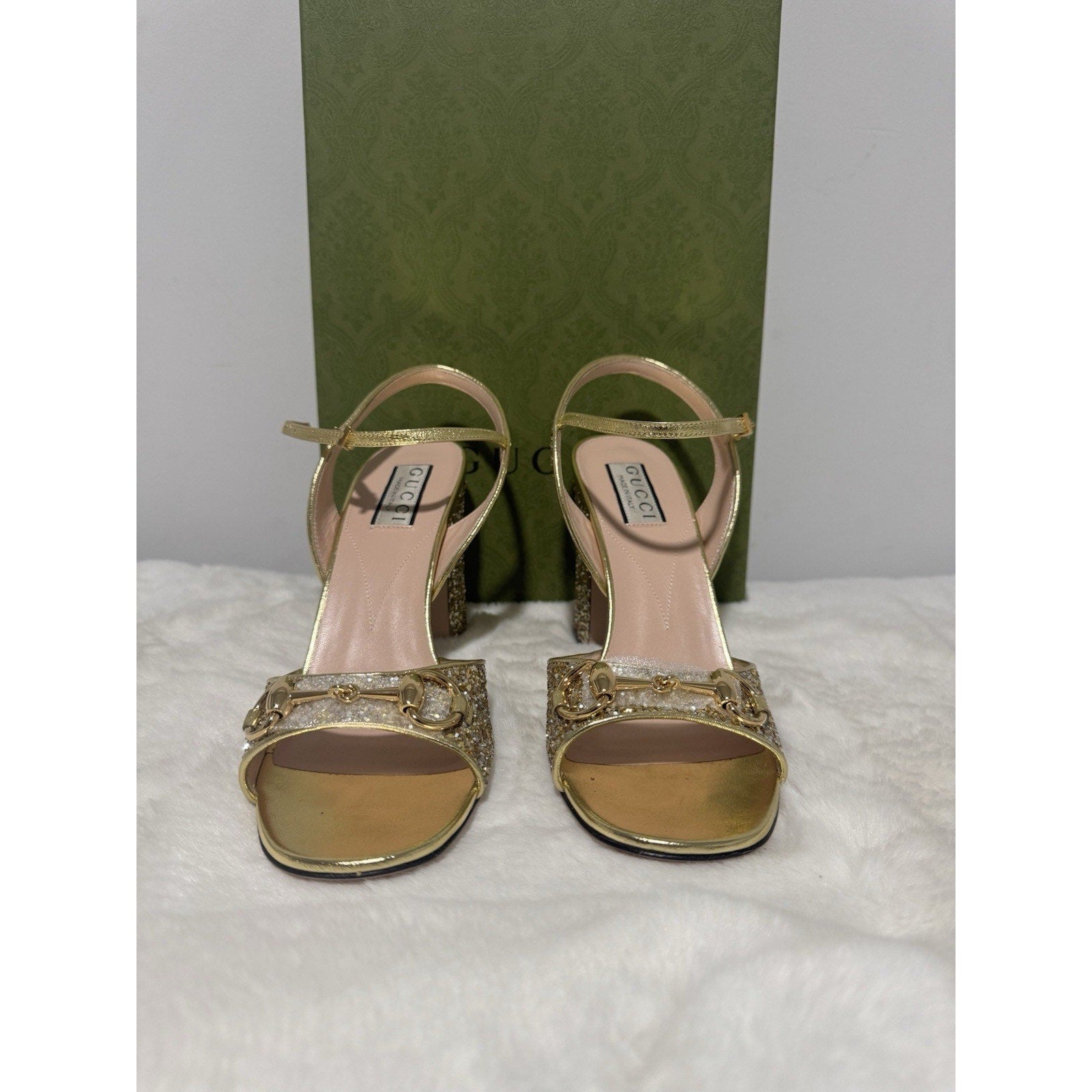 Gucci Metallic Glitter Sparkle Gold Horsebit Logo Ankle Sandal Shoes 8.5 / 38.5