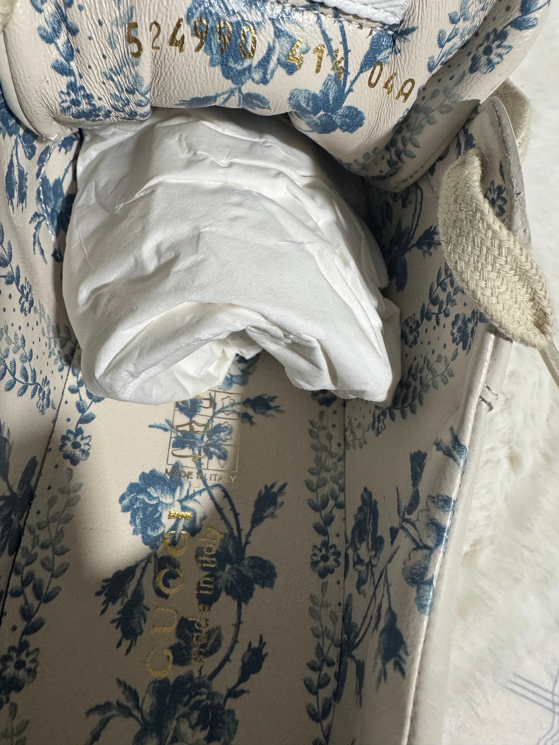 The Gucci Rhyton Platform Calfskin Glitter Logo Women's Sneakers in Mystic White are a stylish and luxurious athletic shoe perfect for casual occasions. Featuring a low top design with a lace-up closure, these sneakers are crafted from leather with glitter accents and a rubber outsole. The iconic Gucci logo adds a touch of glamour to these designer sneakers, making them a must-have for any fashion-forward woman looking for a blend of comfort and style. Made in Italy, these sneakers combine high-quality materials and craftsmanship with a hint of luxury and sophistication.